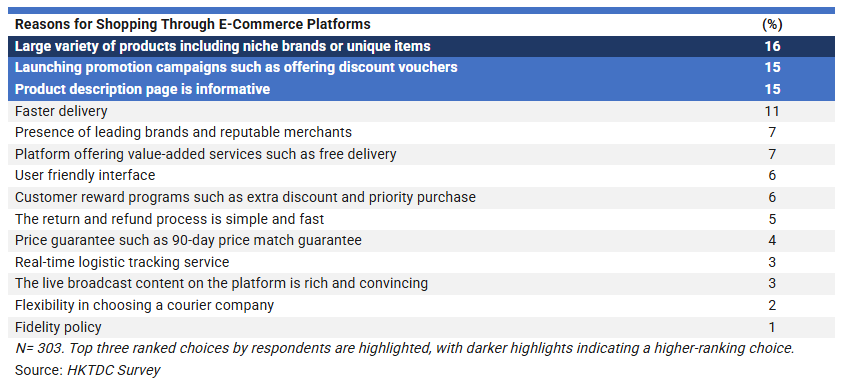 - The main reasons that consumers in the Philippines favour e-commerce platforms include a large variety of products (16%), promotion campaigns (15%) and informative product descriptions (15%).