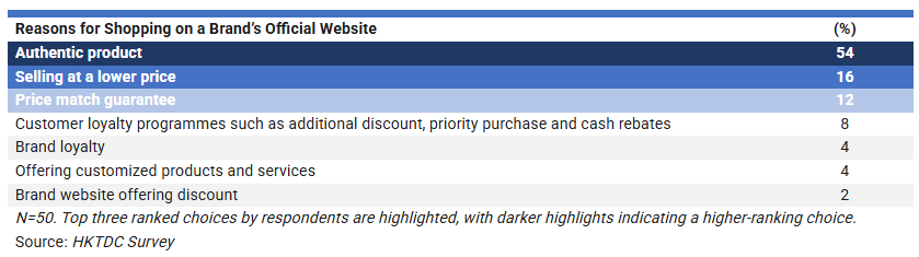 17% of the respondents in the survey bought items on brands’ official websites during the survey period. These were likely to be luxury goods or products with higher value, which may explain why respondents considered the guarantee of getting an authentic product the primary reason to shop on official websites (cited by 54%).