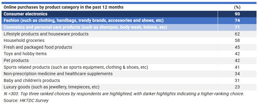 Among Hong Kong products, consumer electronics are the most frequently bought online