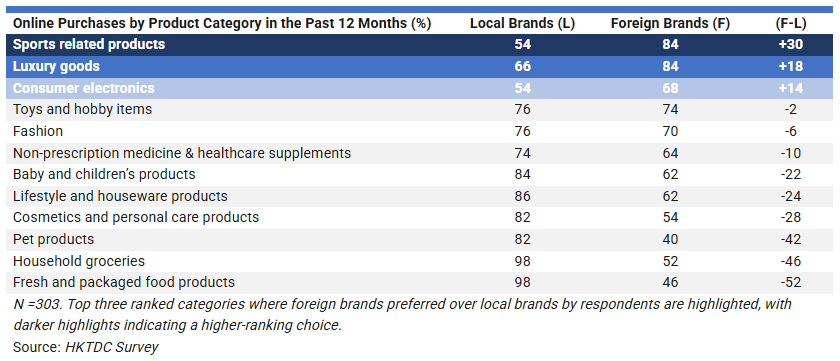 Respondents expressed a preference for foreign brands in categories such as sports‑related products, luxury goods, and consumer electronics.