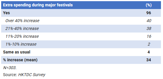 96% of respondents said they spend more during major festivals, with an average increase in spending of 34%.