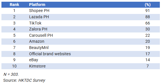 - Hong Kong brands and products that e-consumers in the Philippines reported purchasing most often were consumer electronics (71%) followed by fashion (52%) and cosmetics and personal care products (37%).