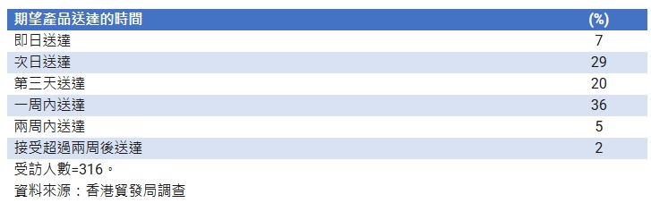 - 大多數新加坡網購者(56%),期望產品能在3天內送達,其中7%期望即日送達。