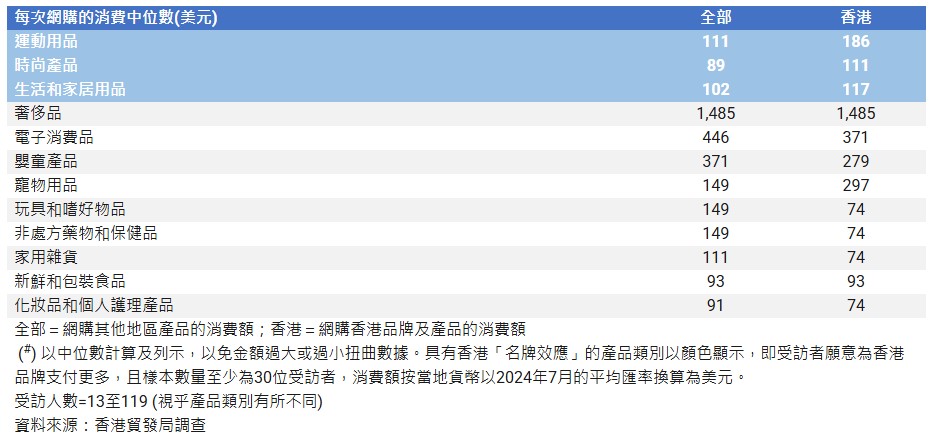 - 與其他地方的品牌相比,新加坡網購者在以下產品類別會花更多金錢購買香港產品,包括運動用品(每次網購多花68%)、時尚產品(多25%)及生活和家居用品(多15%)。