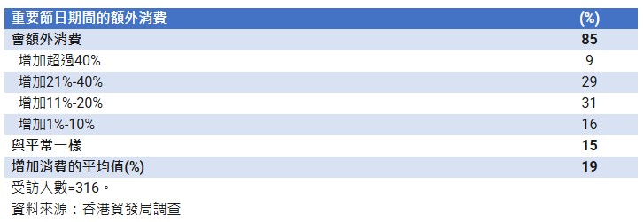 - 85%受訪者在重要節日期間消費較多,平均消費額增加19%。
